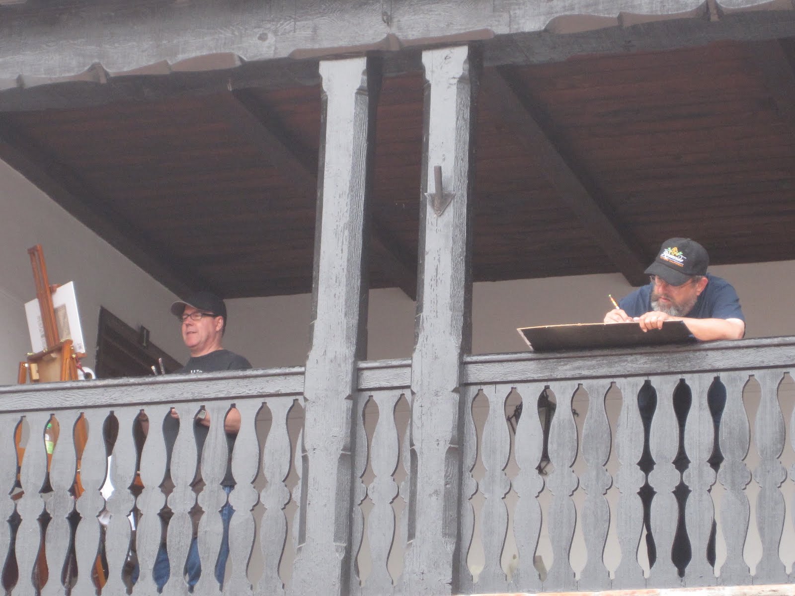 Roy Dietrich and Mark Schooley on the balcony in the court yard. This court yard is used for local artisans to set up their wares during special events and to be there when the cruise ships port for the day.